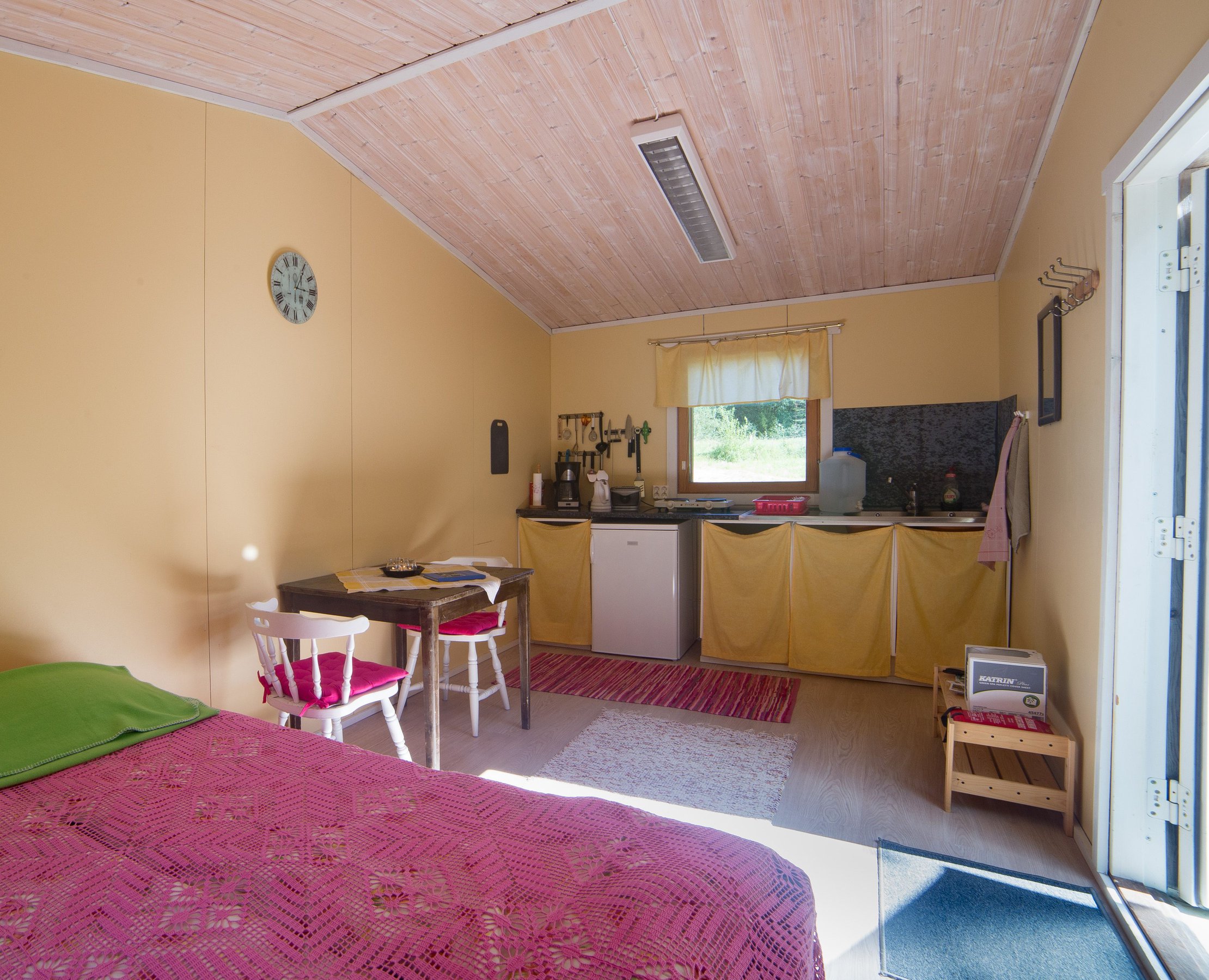 • Mukavuudet: Juokseva lämmin ja kylmä vesi tiskaukseen, sähkö, televisio. Juomavesi tuodaan valmiiksi kanisterilla.